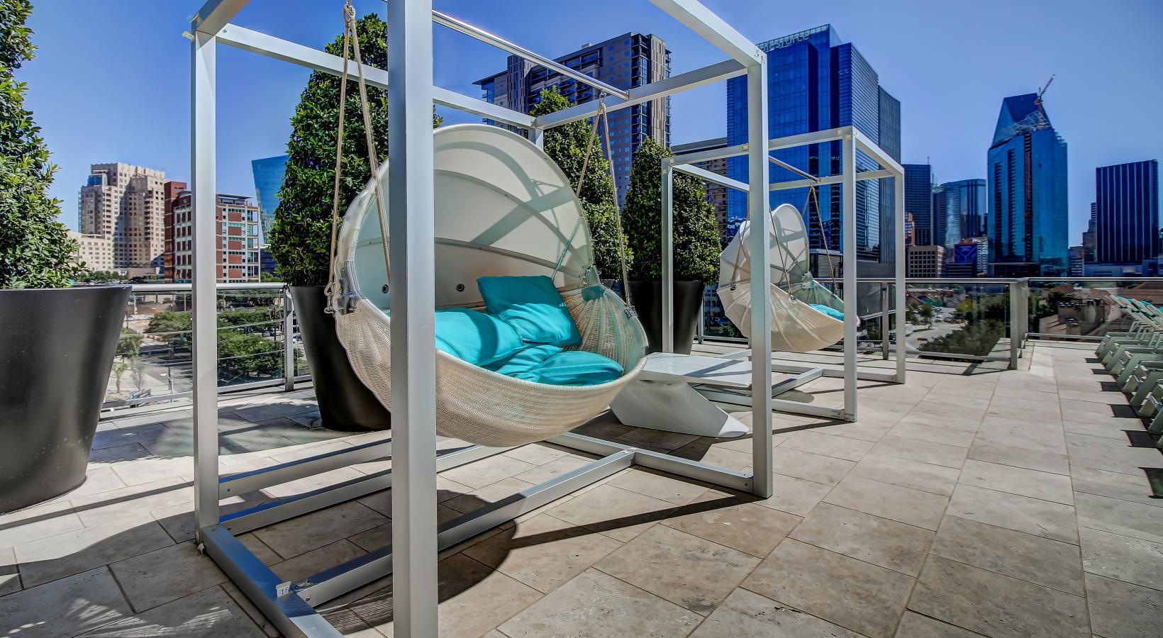• large hanging chairs outside