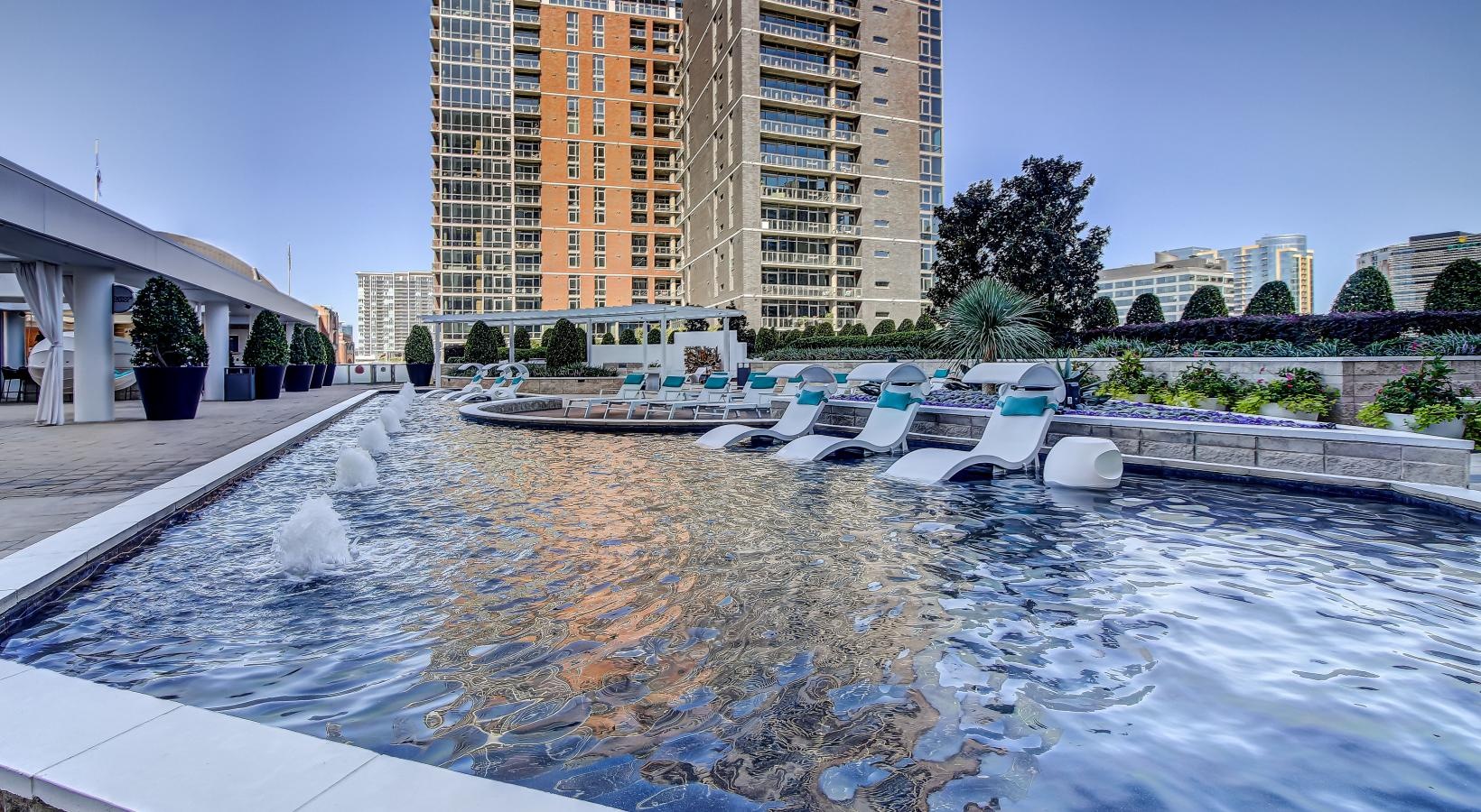 • a swimming pool with lounge chairs