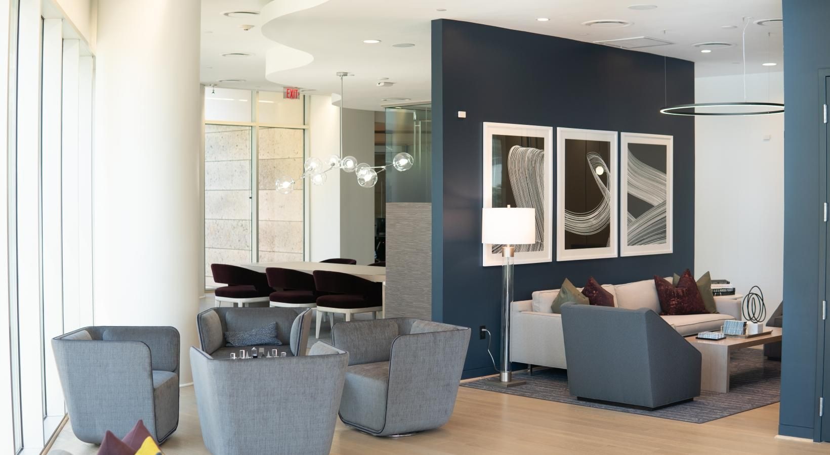 • a clubroom with a couch and chairs