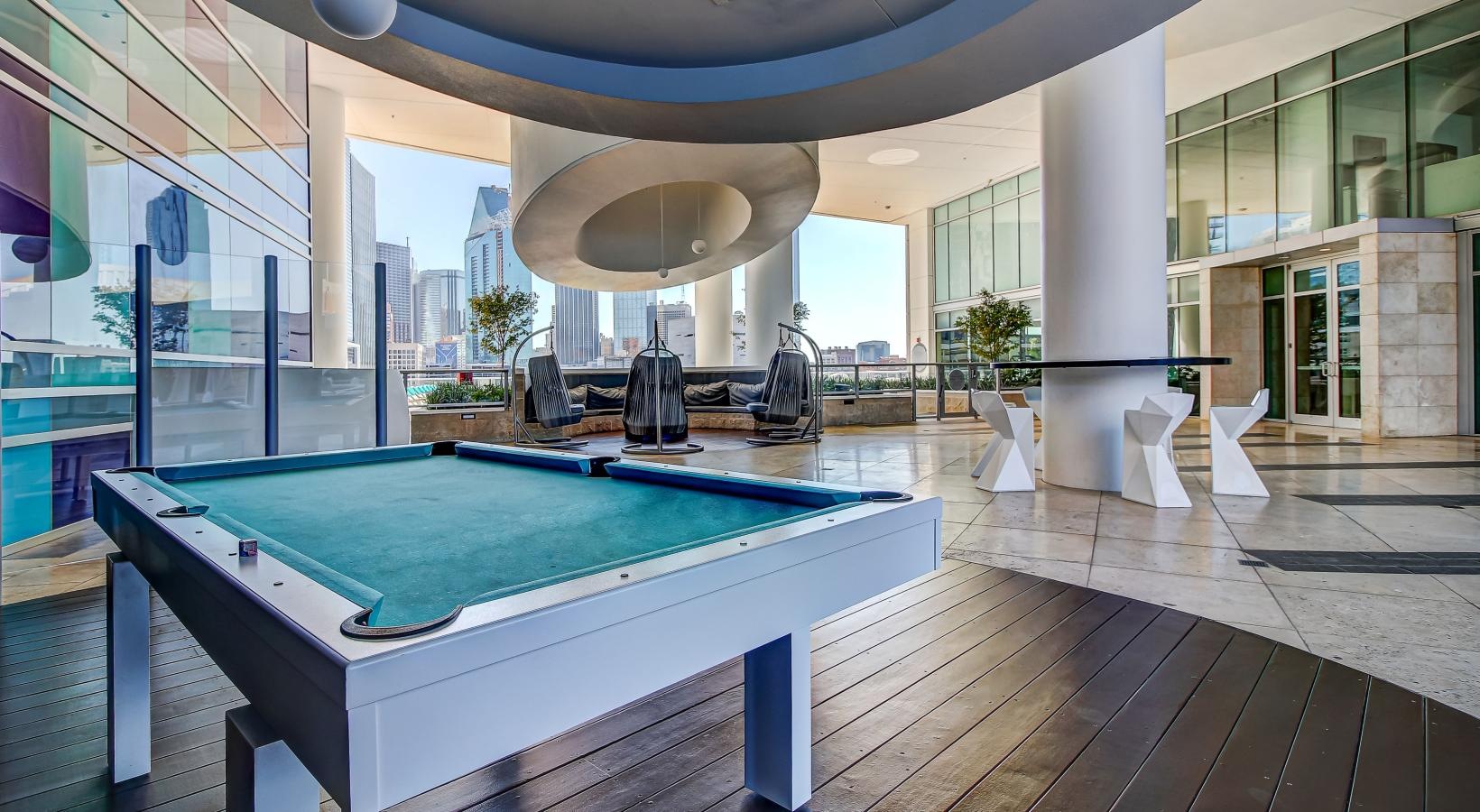 • a clubroom with a pool table