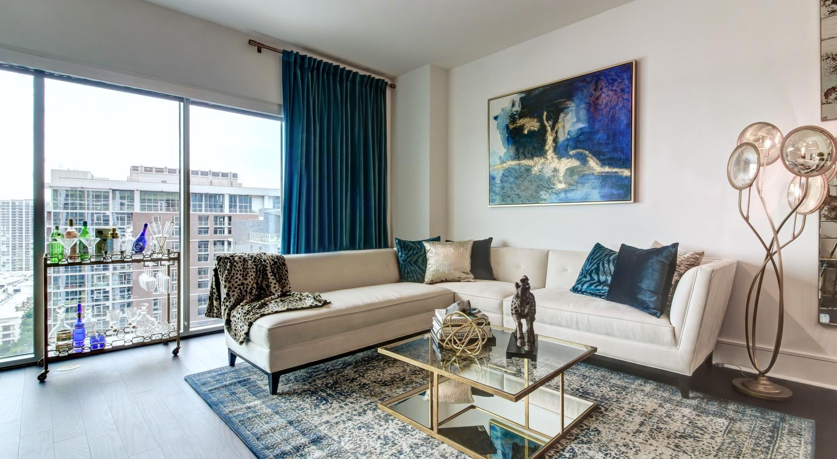 • a living room with a couch and a coffee table