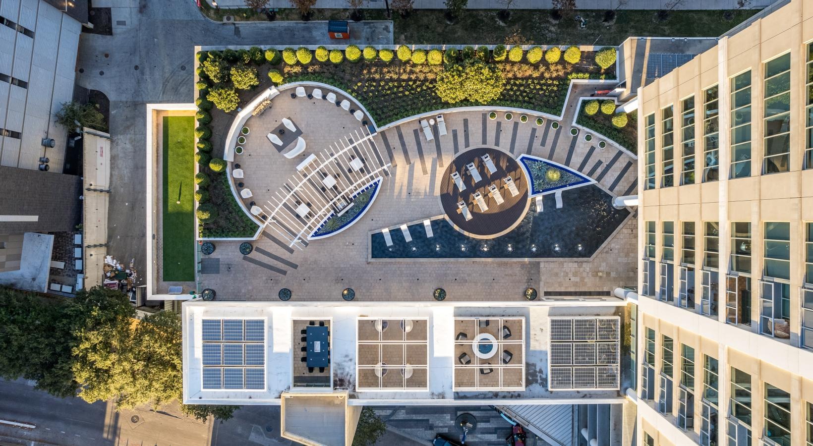 • an eagle eye view of a building and a courtyard