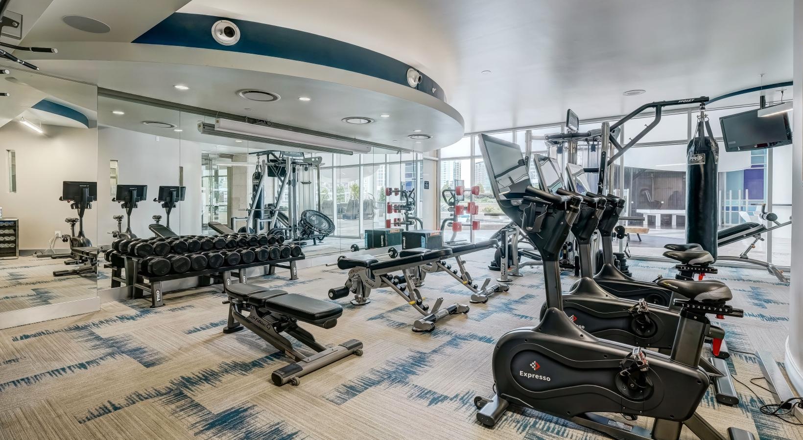• a gym with exercise equipment